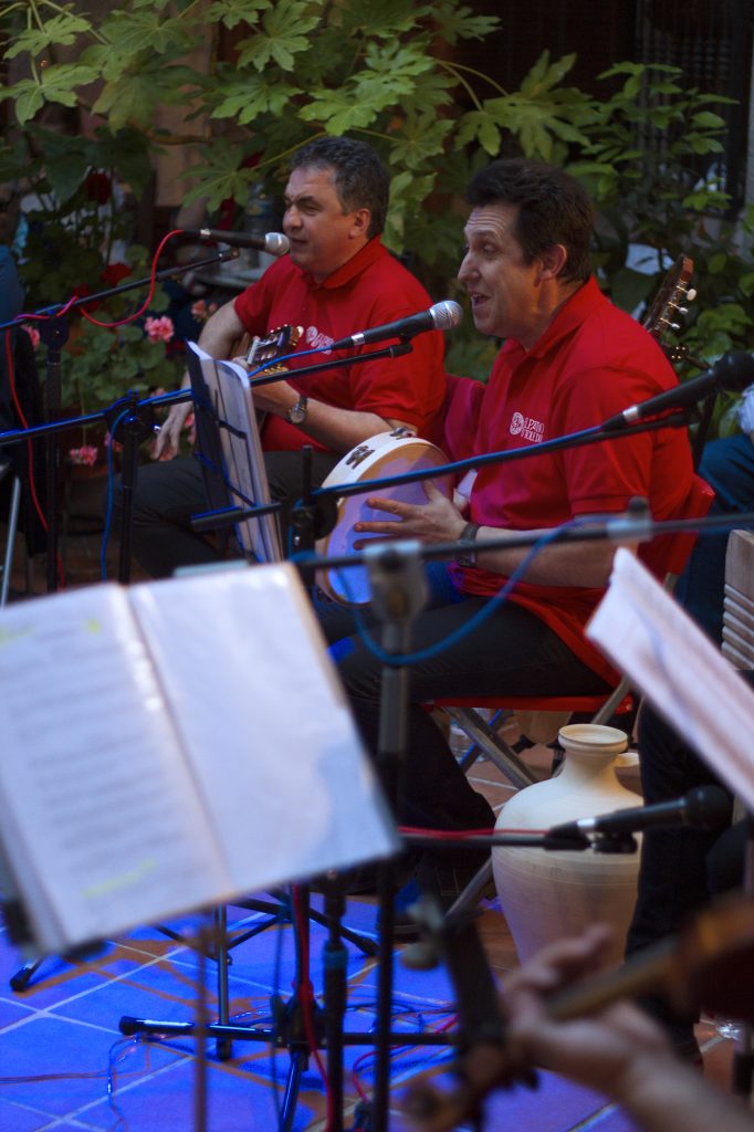 El viernes 27 de mayo de 2016, tuvimos la oportunidad de disfrutar de un concierto en el patio situado en el nº 2 de la Plaza Amador de los Ríos, con motivo de la Festividad del Corpus. Es un hermosísimo escenario, pues los vecinos tienen decorado el patio con muchísimas macetas, y nos sentimos en el corazón de Toledo como en plena